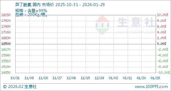 1月29日,生意社异丁酰氯基准价为16500.00元/吨,与本月初持平。