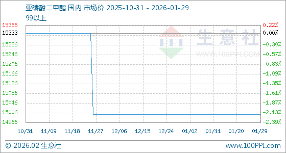 1月29日,生意社亚磷酸二甲酯基准价为15000.00元/吨,与本月初持平。