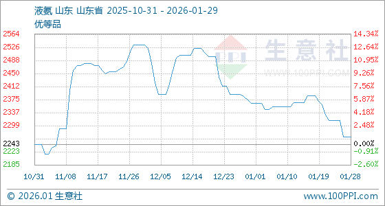1月29日,生意社液氨基准价为2266.67元/吨,与本月初(2363.33元/吨)相比,下降了4.09%。