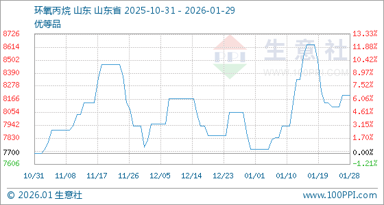 1月29日,生意社环氧丙烷基准价为8200.00元/吨,与本月初(7733.33元/吨)相比,上涨了6.03%。