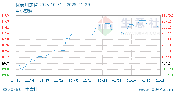 1月29日,生意社尿素基准价为1752.50元/吨,与本月初(1725.00元/吨)相比,上涨了1.59%。