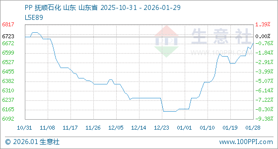 1月29日,生意社PP(拉丝)基准价为6676.67元/吨,与本月初(6170.00元/吨)相比,上涨了8.21%。