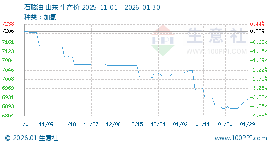 1月30日,生意社石脑油基准价为6926.67元/吨,与本月初(7029.00元/吨)相比,下降了1.46%。
