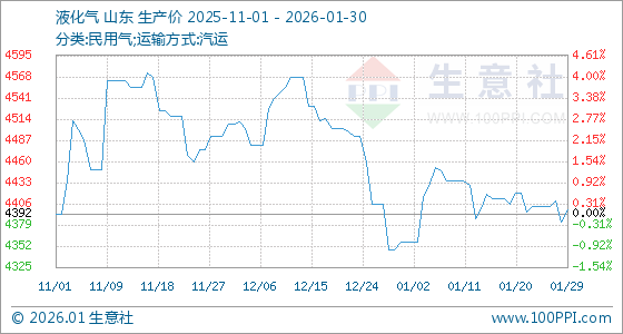 1月30日,生意社液化气基准价为4397.50元/吨,与本月初(4357.50元/吨)相比,上涨了0.92%。