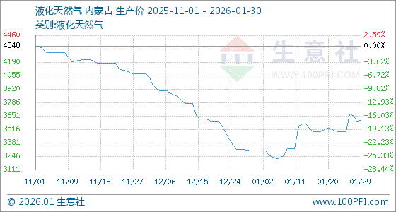 1月30日,生意社液化天然气基准价为3606.00元/吨,与本月初(3302.00元/吨)相比,上涨了9.21%。