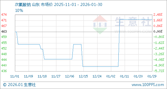 1月30日,生意社次氯酸钠基准价为471.67元/吨 ,与本月初(440.00元/吨 )相比,上涨了7.20%。