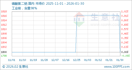 1月30日,生意社磷酸氢二钠基准价为1816.67元/吨,与本月初持平。