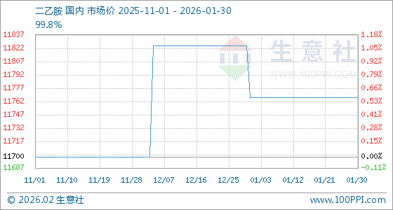 1月30日,生意社二乙胺基准价为11766.67元/吨,与本月初持平。