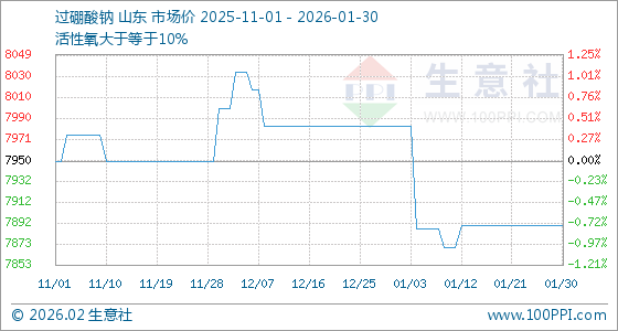 1月30日,生意社过硼酸钠基准价为7890.00元/吨,与本月初(7983.33元/吨)相比,下降了1.17%。