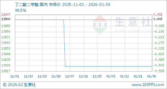 1月30日,生意社丁二酸二甲酯基准价为13825.00元/吨,与本月初持平。