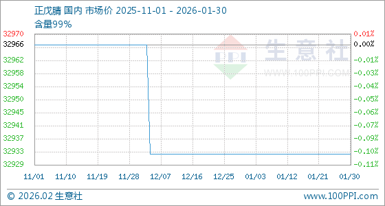1月30日,生意社正戊腈基准价为32933.33元/吨,与本月初持平。