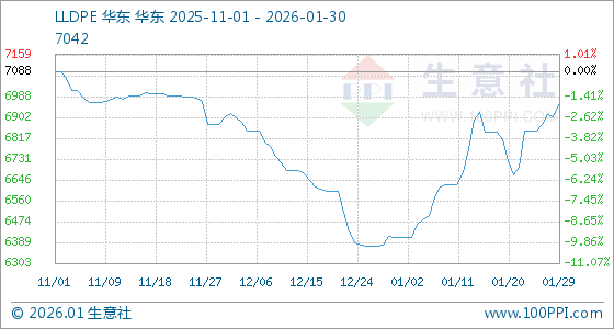 1月30日,生意社LLDPE基准价为6958.33元/吨,与本月初(6410.00元/吨)相比,上涨了8.55%。
