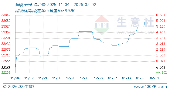 2月2日,生意社黄磷基准价为23712.67元/吨,与本月初持平。