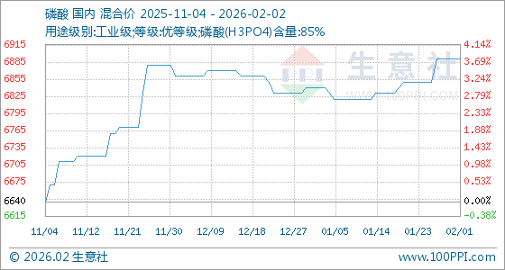 2月2日,生意社磷酸基准价为6890.00元/吨,与本月初持平。