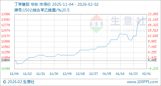 2月2日,生意社丁苯橡胶基准价为13133.33元/吨,与本月初持平。