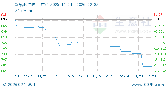 2月2日,生意社双氧水基准价为676.67元/吨,与本月初持平。