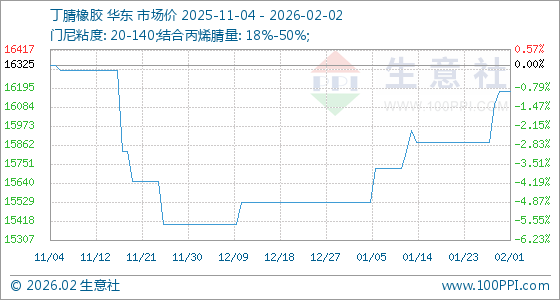2月2日,生意社丁腈橡胶基准价为16175.00元/吨,与本月初持平。