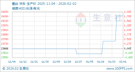 2月2日,生意社氨纶基准价为24100.00元/吨,与本月初持平。