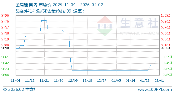 2月2日,生意社金属硅基准价为9650.00元/吨,与本月初持平。