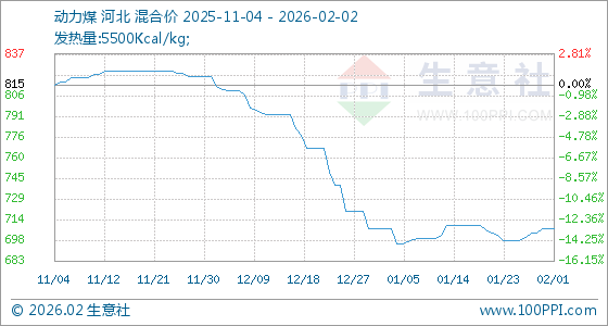 2月2日,生意社动力煤基准价为707.50元/吨,与本月初持平。