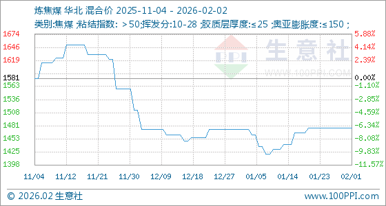 2月2日,生意社炼焦煤基准价为1476.25元/吨,与本月初持平。