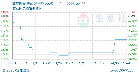 2月2日,生意社环氧树脂基准价为13666.67元/吨,与本月初持平。