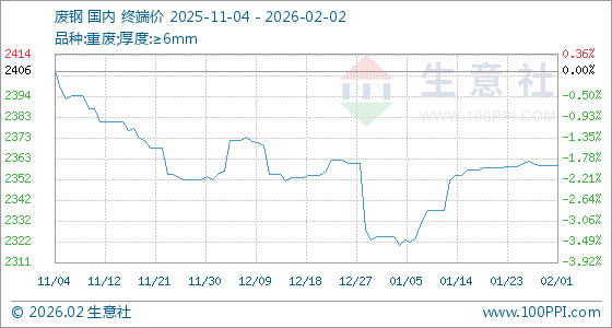 2月2日,生意社废钢基准价为2359.58元/吨,与本月初持平。