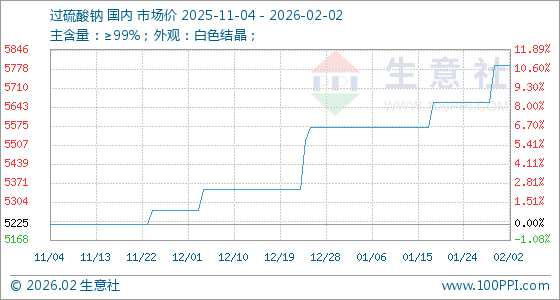 2月2日,生意社过硫酸钠基准价为5790.00元/吨,与本月初持平。