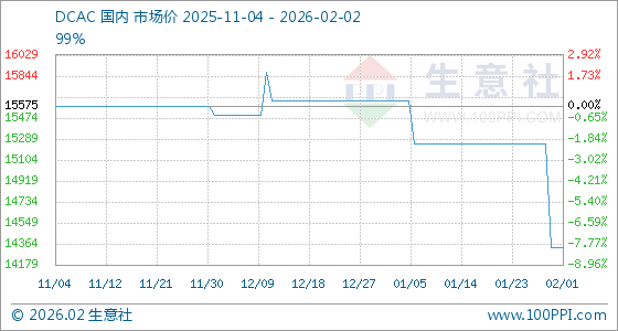 2月2日,生意社DCAC基准价为14333.33元/吨,与本月初持平。