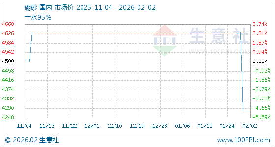 2月2日,生意社硼砂基准价为4200.00元/吨,与本月初持平。