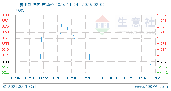 2月2日,生意社三氯化铁基准价为2833.33元/吨,与本月初持平。