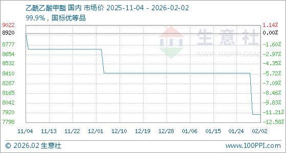 2月2日,生意社乙酰乙酸甲酯基准价为7900.00元/吨,与本月初持平。