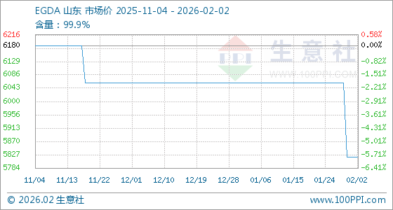2月2日,生意社EGDA基准价为5820.00元/吨,与本月初持平。