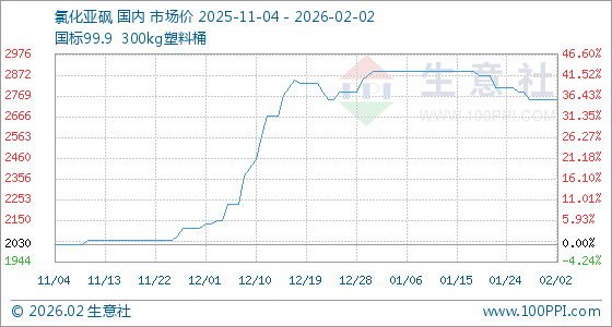 2月2日,生意社氯化亚砜基准价为2750.00元/吨,与本月初持平。