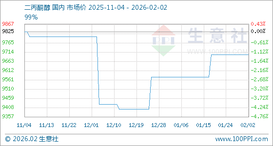 2月2日,生意社二丙酮醇基准价为9700.00元/吨,与本月初持平。