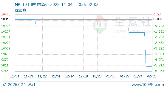 2月2日,生意社NP-10基准价为9800.00元/吨,与本月初持平。