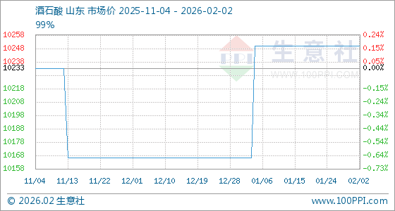 2月2日,生意社酒石酸基准价为10250.00元/吨,与本月初持平。