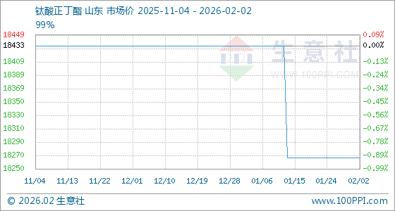 2月2日,生意社钛酸正丁酯基准价为18266.67元/吨,与本月初持平。