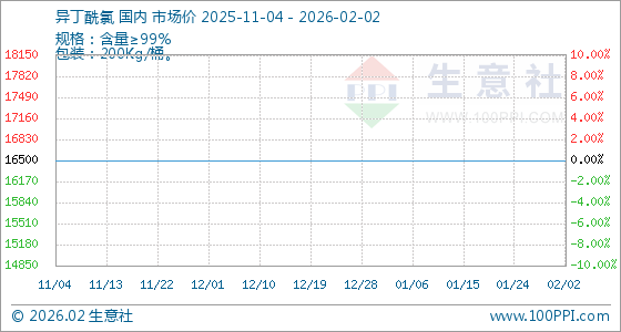 2月2日,生意社异丁酰氯基准价为16500.00元/吨,与本月初持平。