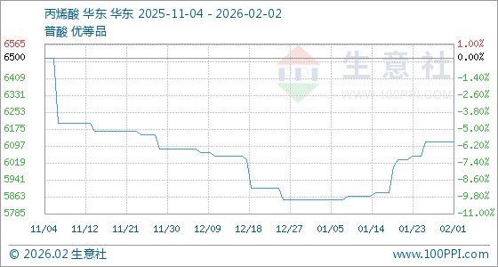 2月2日,生意社丙烯酸基准价为6116.67元/吨,与本月初持平。