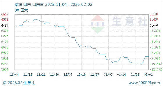 2月2日,生意社柴油基准价为5922.40元/吨,与本月初持平。
