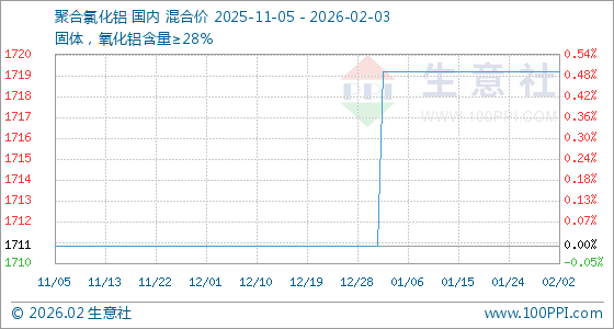 2月3日,生意社聚合氯化铝基准价为1720.00元/吨,与本月初持平。
