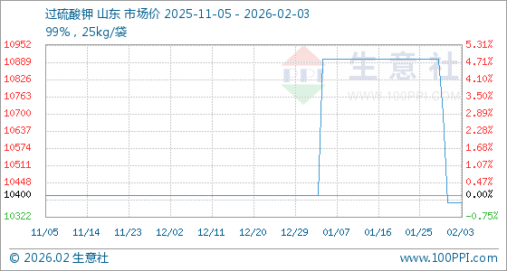 2月3日,生意社过硫酸钾基准价为10800.00元/吨,与本月初持平。