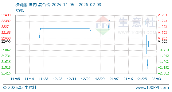 2月3日,生意社次磷酸基准价为22066.67元/吨,与本月初持平。