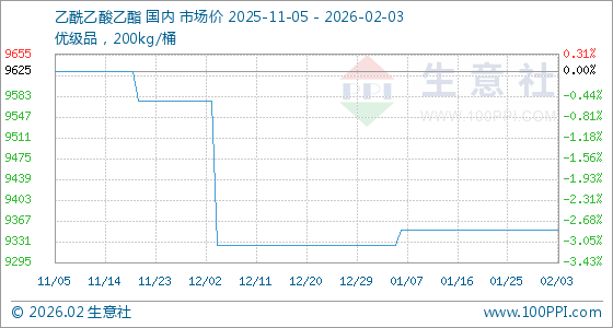 2月3日,生意社乙酰乙酸乙酯基准价为9350.00元/吨,与本月初持平。