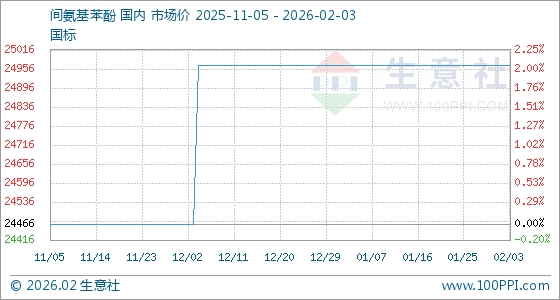 2月3日,生意社间氨基苯酚基准价为24966.67元/吨,与本月初持平。
