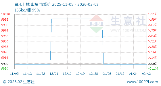 2月3日,生意社白凡士林基准价为9900.00元/吨,与本月初持平。