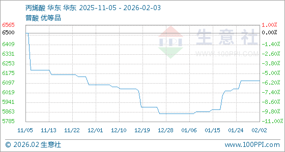 2月3日,生意社丙烯酸基准价为6116.67元/吨,与本月初持平。