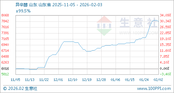 2月3日,生意社异辛醇基准价为7833.33元/吨,与本月初(7880.00元/吨)相比,下降了0.59%。