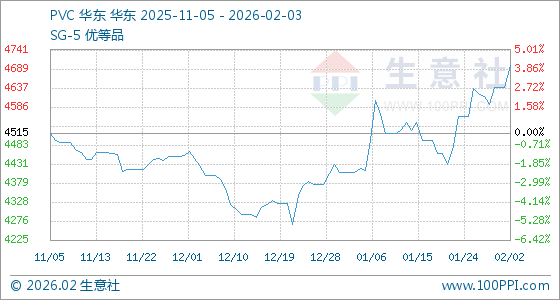 2月3日,生意社PVC基准价为4698.00元/吨,与本月初(4640.00元/吨)相比,上涨了1.25%。